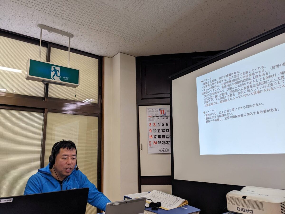会場参加できる方は静岡市清水商工会会議室で、遠方の会員はオンラインで参加して